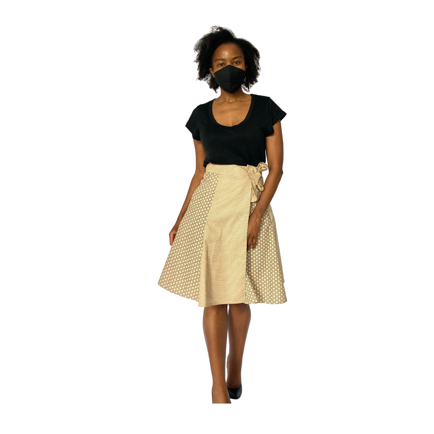 Whether you're heading to the office, dressing up for a wedding or heading home for a traditional meeting this versatile skirt will come in handy. The wrap design allows this skirt to comfortably fit you even if your size fluctuates. It also has convenient pockets on both sides.